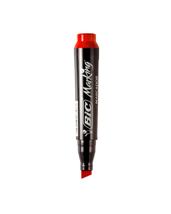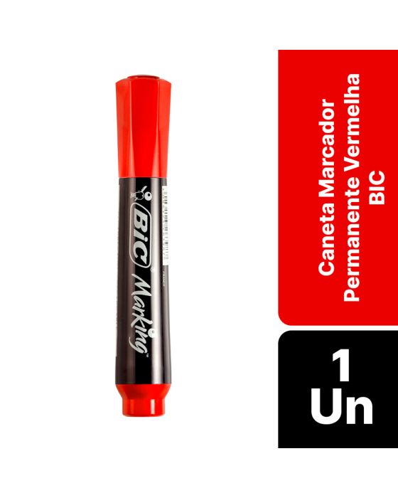 Características:- Desenvolvida para atender com excelência profissionais e usuários exigentes, a Caneta Marcador Permanente BIC Marking Vermelha é ideal para marcações em superfícies diversas com alta precisão e durabilidade. Sua ponta chanfrada bloqueada permite traços finos ou grossos, variando entre 1,5 mm e 3,0 mm, adaptando-se a diferentes aplicações, desde trabalhos manuais até uso industrial leve. A tinta à base de álcool garante secagem rápida, minimizando riscos de borrões e promovendo um acabamento limpo e profissional.- Desempenho técnico e durabilidade: Projetada com ponta chanfrada de alta resistência, bloqueada para evitar retrações durante o uso, a caneta proporciona maior vida útil e desempenho constante. A versatilidade do traço (1,5 mm a 3,0 mm) atende desde detalhes mais delicados até coberturas maiores, com controle total pelo usuário.- Aplicação em diversas superfícies: Recomendada para marcar papelão, madeira, vidro, plástico, metal, acrílico e porcelana, essa caneta é indicada para uso em escritórios, escolas, ambientes industriais e atividades de artesanato. A tinta permanente fixa com firmeza e mantém legibilidade mesmo em materiais mais desafiadores.- Tinta à base de álcool – secagem rápida e sem borrões: Sua fórmula à base de álcool promove secagem instantânea, tornando o produto ideal para uso contínuo, sem interrupções, e para atividades que demandam precisão e limpeza.- Marca de confiança: A BIC é referência global em soluções de escrita, combinando tradição e inovação em produtos acessíveis e de alta performance.- Dimensões da embalagem:Comprimento: 12cm;Largura: 1,8cm;Altura: 1,8cm;Peso: 18g.ATENÇÃO! NÃO RECOMENDÁVEL PARA CRIANÇAS DE ATÉ 3 (TRÊS) ANOS POR CONTER PARTE(S) PEQUENA(S) QUE PODEM SER ENGOLIDA(S) OU ASPIRADA(S). * As especificações podem ser alteradas sem aviso prévio ** Imagem meramente ilustrativa.