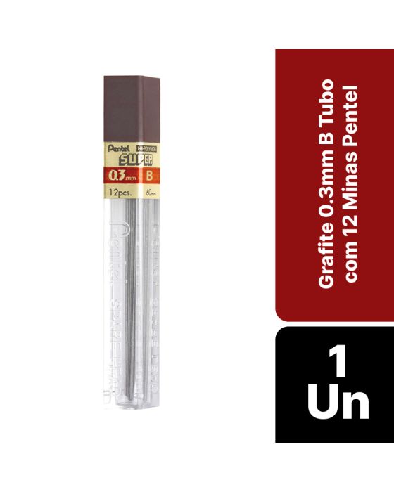 Características:- Alta precisão e desempenho para traços técnicos: O grafite Pentel 0.3mm B é desenvolvido para oferecer máxima precisão em aplicações que exigem traços finos e detalhados. Com calibre ultrafino e graduação de dureza B, proporciona linhas mais escuras e macias, ideais para escrita compacta, desenhos técnicos e uso em instrumentos de escrita de alta sensibilidade.- Resistência e suavidade na escrita: Fabricado com tecnologia japonesa, o grafite Pentel alia resistência à quebra com excelente fluidez no traço, mesmo sob pressão leve. A composição uniforme evita falhas durante a escrita ou desenho, contribuindo para um desempenho contínuo e confiável, especialmente em ambientes profissionais e acadêmicos.- Aplicação profissional e técnica: Por suas características de precisão e maciez, o grafite 0.3mm B é amplamente utilizado por engenheiros, arquitetos, designers e estudantes em atividades que exigem traços consistentes em áreas reduzidas. Sua espessura permite maior controle em preenchimentos, marcações de projetos técnicos ou registros em formulários e cadernos com espaços limitados.- Praticidade e economia no uso diário: Cada tubo contém 12 minas, acondicionadas em embalagem compacta e leve, ideal para transporte em estojos ou organizadores de escritório. O sistema de armazenamento protege os grafites contra impactos e facilita o manuseio no dia a dia.- Reconhecimento da marca Pentel: A Pentel é uma fabricante japonesa de renome mundial, com tradição em instrumentos de escrita e materiais técnicos para desenho e escritório.- Dimensões do produto:Comprimento: 7,1cm;Largura: 0,9cm;Altura: 0,9cm;Peso: 18g.IMPORTANTE! NÃO RECOMENDÁVEL PARA CRIANÇAS DE ATÉ 6 (SEIS) ANOS, POR CONTER PARTE(S) PEQUENA(S) QUE PODE(M) SER ENGOLIDA(S) OU ASPIRADA(S) E PONTA(S) AGUDA(S) FUNCIONAL(IS).* As especificações podem ser alteradas sem aviso prévio ** Imagem meramente ilustrativa.