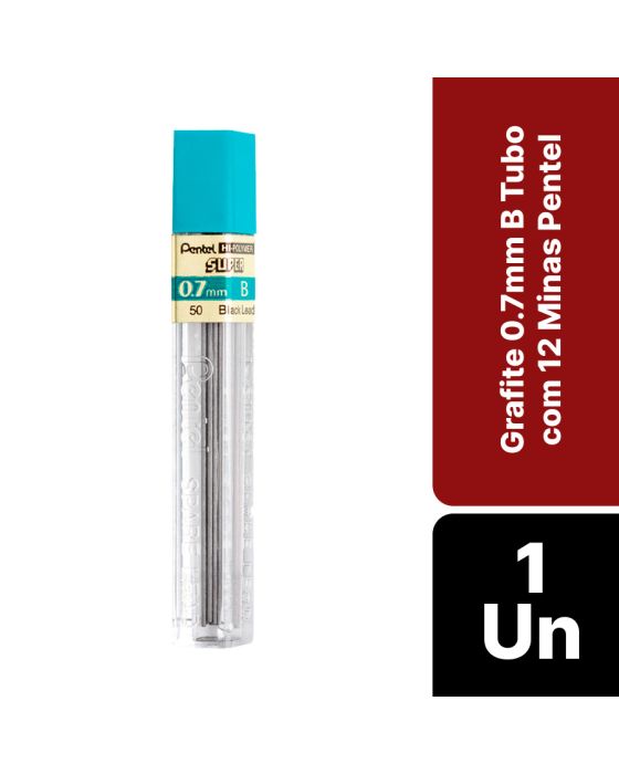 Características:- Alta precisão e desempenho para traços técnicos: O grafite Pentel 0.7mm B é desenvolvido para oferecer máxima precisão em aplicações que exigem traços finos e detalhados. Com calibre ultrafino e graduação de dureza B, proporciona linhas mais escuras e macias, ideais para escrita compacta, desenhos técnicos e uso em instrumentos de escrita de alta sensibilidade.- Resistência e suavidade na escrita: Fabricado com tecnologia japonesa, o grafite Pentel alia resistência à quebra com excelente fluidez no traço, mesmo sob pressão leve. A composição uniforme evita falhas durante a escrita ou desenho, contribuindo para um desempenho contínuo e confiável, especialmente em ambientes profissionais e acadêmicos.- Aplicação profissional e técnica: Por suas características de precisão e maciez, o grafite 0.7mm B é amplamente utilizado por engenheiros, arquitetos, designers e estudantes em atividades que exigem traços consistentes em áreas reduzidas. Sua espessura permite maior controle em preenchimentos, marcações de projetos técnicos ou registros em formulários e cadernos com espaços limitados.- Praticidade e economia no uso diário: Cada tubo contém 12 minas, acondicionadas em embalagem compacta e leve, ideal para transporte em estojos ou organizadores de escritório. O sistema de armazenamento protege os grafites contra impactos e facilita o manuseio no dia a dia.- Reconhecimento da marca Pentel: A Pentel é uma fabricante japonesa de renome mundial, com tradição em instrumentos de escrita e materiais técnicos para desenho e escritório.Dimensões do produto:Comprimento: 7,1cm;Largura: 0,9cm;Altura: 0,9cm;Peso: 18g.IMPORTANTE! NÃO RECOMENDÁVEL PARA CRIANÇAS DE ATÉ 6 (SEIS) ANOS, POR CONTER PARTE(S) PEQUENA(S) QUE PODE(M) SER ENGOLIDA(S) OU ASPIRADA(S) E PONTA(S) AGUDA(S) FUNCIONAL(IS).* As especificações podem ser alteradas sem aviso prévio ** Imagem meramente ilustrativa.