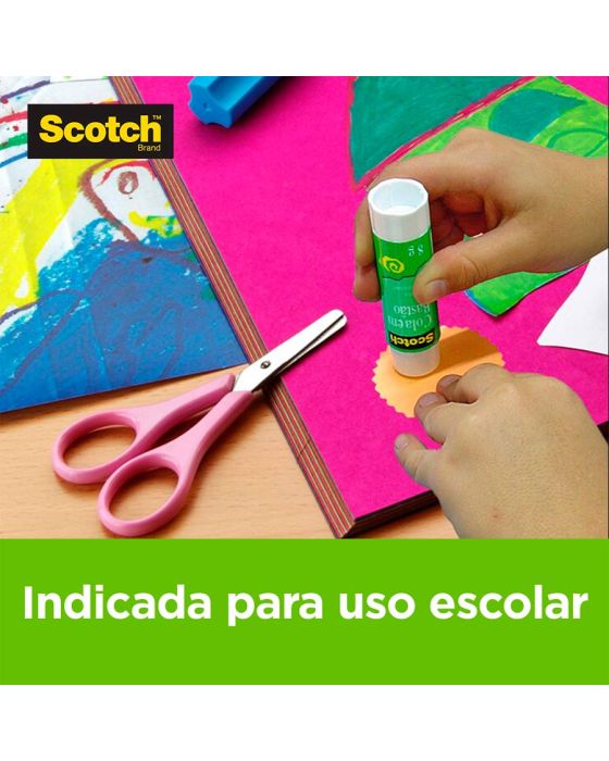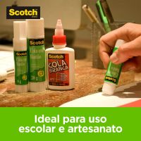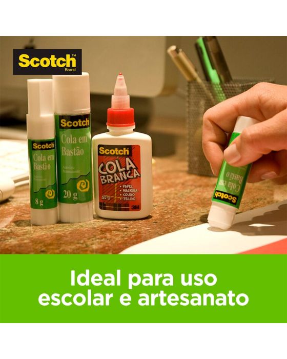 Características:Com a qualidade Scotch®, a Cola em Bastão permite ótimos resultados para uso no escritório e na escola. Ela não resseca no tubo, é lavável e não tóxica, sendo segura para uso infantil.Cole e fixe o que você precisar! A Cola em Bastão com a qualidade Scotch® permite que você cole papéis, tecidos, fotografias, álbuns e muitos outros trabalhos manuais. Certificada pelo INMETRO, possui tampa com design exclusivo, desenvolvida a fim de promover mais segurança durante o uso por crianças.A Cola em Bastão Scotch® não possui solvente e sua aplicação é limpa, evitando sujeiras no uso. Com tecnologia inovadora, ele garante uma colagem sem rugas e resistente às filtrações. É fácil de usar e limpar, sendo removida apenas com água e sabão. O bastão de cola é preso à base da embalagem, evitando sua queda e garantindo seu melhor aproveitamento.Detalhes:- Marca: Scotch®;- Referência: HB004556880;- Linha: Cola bastão;- Volume/Peso: 40g;- Contém: 1 unidade do produto de 40g;- Certificada pelo INMETRO;- Não resseca no tubo, é lavável e não tóxica;- Tampa com design exclusivo para promover mais segurança durante o uso por crianças;- Não possui solvente e não faz sujeiras;- Seu rendimento é maior, pois o bastão de cola fica preso à base, evitando quedas e proporcionando o seu uso até o final.Onde aplicar:- Uso no escritório, casa ou escola, sendo excelente para colagens de papéis, fotos e materiais semelhantes.Modo de usar:- Destampe e gire a base até expor um pouco de cola;- Deslize o bastão quantas vezes necessário sobre uma das superfícies e depois junte as partes deslizando a mão;- Tampe após o uso e conserve em local fresco e seco.Composição:- Ingredientes: Água, Sacarose, Copolímero Acrílico, Estearato de Sódio Puro, Polímero de n-vinilpirrolidinona, 3-iodo-2-propil butilcarbamato, Glicerina, Hidróxido de Sódio, 2-Aminoisobutanol.Medidas:- Dimensões: 12,3 x 3,1 x 3,1cm (AxLxC).- Peso: 72g.* As especificações podem ser alteradas sem aviso prévio ** Imagem meramente ilustrativa.