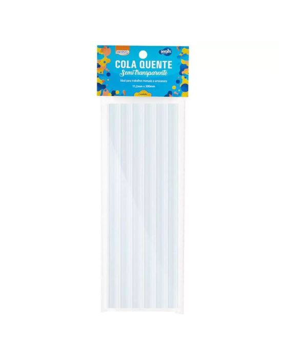 Caracteristicas:Bastão de cola quente semi transparente.- Ideal para trabalhos manuais e artesanato- Pacote com 6 unidades- Dimensões: 1,12 x 30cm (grosso)Dica de segurança: nunca toque a ponteira da pistola aplicadora, sob perigo de queimadura. Em contato com a pele, remova imediatamente com água e sabão. Evite inalação prolongada. Estocar em local fresco e arejado, livre de umidade. Aguarde 3 segundos entre o acionamento da pistola para prolongar a vida útil do aparelho. Não retire a cola que sobrar da pistola.* As especificações podem ser alteradas sem aviso prévio ** Imagem meramente ilustrativa.