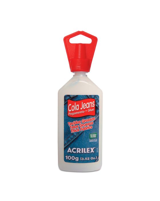 Caracteristicas:Com a Cola Tecido Jeans Acrilex é possível colar tecidos grossos como jeans e lonas!Detalhes:- Marca: Acrilex.- Modelo: Cola tecido Jens.- Referência: 17910.- Linha: Cola para tecido.- Cor: Branca.- Volume/Peso: 100ml.- Contém: 1 unidade do produto.- Lavagem: somente após 72 horas depois da alicação.- Não tóxica.- Pronta para uso.- Secagem ao ar.- Resistente à lavagens.- Acabamento incolor após a secagem.Onde usar: - Desenvolvida especialmente para colar tecidos grossos como jeans e lonas, além de trabalhos de colagem de tecido sobre tecido, para fazer barras e para evitar a queda dos botões de camisas, pingue sobre ele já costurado.- Não indicada para tecidos finos e claros, sujeitos a manchas.Aplicação: - Aplicar com o próprio bico aplicador e se necessário, espalhar com o pincel. Unir as duas partes dos tecidos a serem coladas.- Aguardar 72 horas para lavagem.ATENÇÃO! CONSERVE FORA DO ALCANCE DAS CRIANÇAS E DOS ANIMAIS DOMÉSTICOS.* As especificações podem ser alteradas sem aviso prévio ** Imagem meramente ilustrativa.