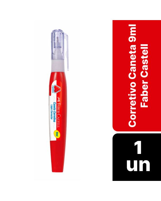 Características:Quando se trata de praticidade e eficiência, as canetas corretivas da Faber-Castell são a escolha definitiva. Com sua ponta metálica e secagem rápida, essas canetas são perfeitas para correções precisas e rápidas, tornando-se indispensáveis para estudantes e profissionais.Seja para correções em sala de aula, no escritório ou durante um projeto de arte, as canetas corretivas Faber-Castell são a escolha perfeita para quem busca praticidade, eficiência e qualidade. Com sua ponta metálica, secagem rápida e design ergonômico, essas canetas tornam o processo de correção mais fácil e rápido do que nunca.Detalhes:- Marca: Faber-Castell;- Referência: OF/CC9ML;- Linha: Corretivos;- Tipo: Caneta;- Cor: Branco;- Volume: 9ml;- Contém: 1 unidade do produto;- Nova embalagem: Aumento de 7ml para 9ml;- Secagem rápida.Ideal para: - Correção de detalhes de escrita, desenho e impressões.Modo de uso:- Com a caneta tampada, agite bem;- Posicione e pressione a ponta da caneta contra o papel;- Mantenha fechada após o uso.Composição:- Corpo e tampa: Fabricado em resinas termoplásticas;- Tinta: Fabricado em resinas, pigmentos, solventes e adtivos;- Ponta: fabricado em metal.Precauções:- Mantenha fora do alcance das crianças e longe do fogo ou fontes de calor excessivo;- Evitar temperaturas de 45°C e exposição direta aos raios solares;- Armazenar em lugar seco e ventilado.Medidas:- Dimensões do produto: 13 x 1,8 x 1,8cm (CxLxA);- Peso: 0,027g.ATENÇÃO! NÃO RECOMENDÁVEL PARA CRIANÇAS MENORES DE 3 (TRÊS) ANOS POR CONTER PARTE(S) PEQUENA(S) QUE PODE(M) SER ENGOLIDA(S) OU ASPIRADA(S).As especificações podem ser alteradas sem aviso prévio ** Imagem meramente ilustrativa.