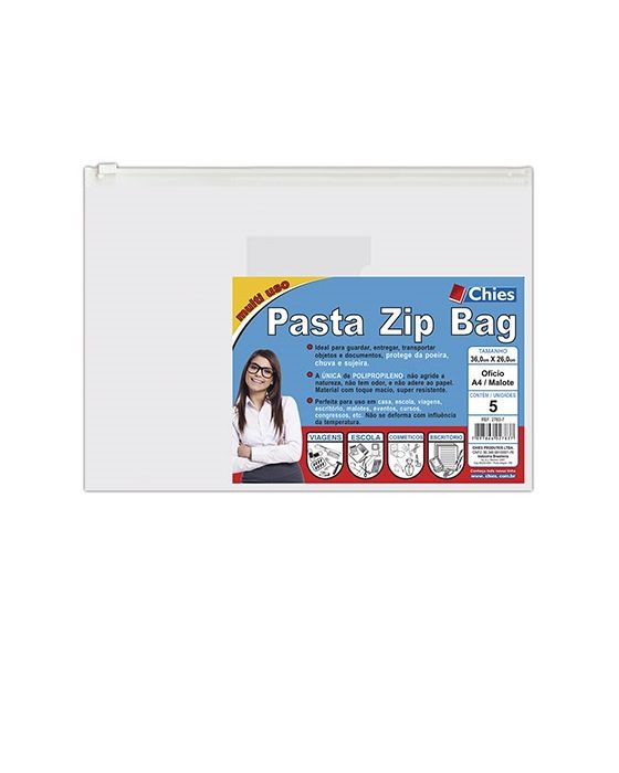 Envelope Plastico Cristal Ziper C/ Visor 26x36cm C/5 Chies 2783