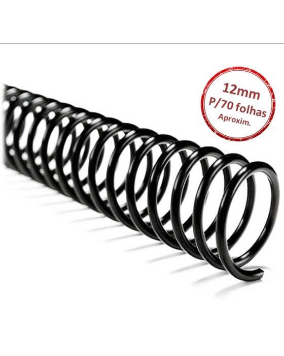 Espiral 12 Mm P/70fls Preto Plaspiral C/12