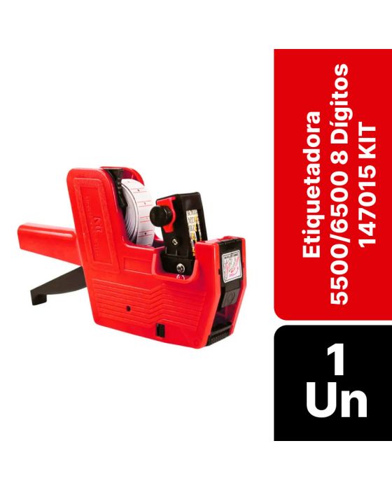 Características:A etiquetadora Kit além de prática, é de fácil manuseio, possui design moderno e ergonômico. Muito utilizadas em comércios, é ideal para etiquetar preço em mercadorias ou organizar e catalogar os materiais com nome e data, ou da maneira sua maneira!Detalhes:- Marca: Kit;- Modelo: 5500/6500;- Referência: 147015;- Linha: Etiquetadoras;- Cor: Vermelho;- Contém: 1 unidade do produto;- Dígitos: 8 dígitos;- Design moderno;- Fácil manuseio;- Sistema de abertura em um toque;- Tinteiro descartável;- Um cabeçote.Ideal para:- Ideal para etiquetar preços de produtos de lojas, mercados e demais estabelecimentos que fazem a etiquetação de preço dos produtos de forma manual ou para empresas que utilizam para inventariar ou catalogar materiais.çTinteiro para reposição: TINTEIRO PARA ETIQUETADORA C/5 UN BLUPACK (SKU Contabilista: 71266).Composição:- Fabricado em plástico.Conteúdo da embalagem: 1 Etiquetadora 5500/6500 8 dígitos 147015 KIT.* As especificações podem ser alteradas sem aviso prévio ** Imagem meramente ilustrativa.