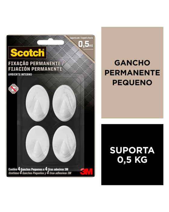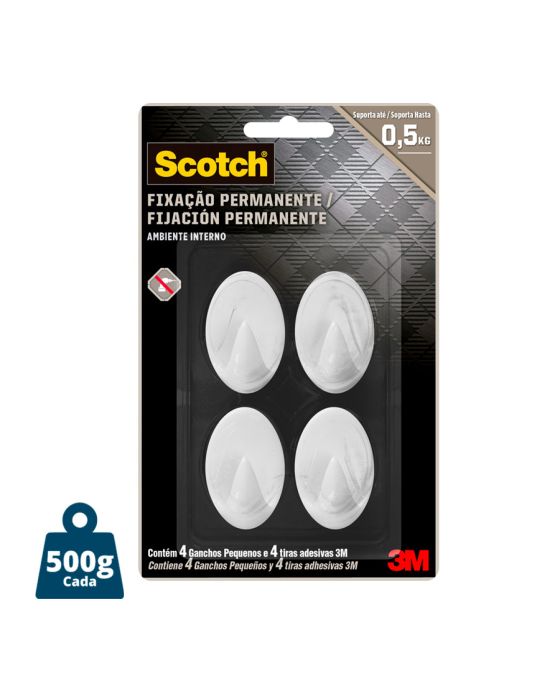 Características:- Gancho adesivo pequeno para organização prática em ambientes internos: O Gancho Scotch Pequeno Branco 3M foi desenvolvido para oferecer uma solução prática e permanente de fixação em ambientes internos, sem necessidade de ferramentas. Seu adesivo de alta aderência garante sustentação confiável para objetos leves do dia a dia, proporcionando organização eficiente com instalação rápida e limpa.- Fixação permanente sem perfurações e aplicação simplificada: Com estrutura em poliestireno e adesivo à base de borracha sintética, o gancho fixa diretamente em superfícies lisas, dispensando pregos, parafusos ou suportes adicionais. O processo de aplicação é direto: basta remover o liner protetor, posicionar e pressionar, garantindo uma aderência firme para uso imediato. Cada gancho suporta até 500 g, sendo adequado para itens leves em rotinas domésticas ou corporativas.- Design compacto e discreto para uso versátil: Com medidas reduzidas, 3,5 × 2,5 × 2 cm (AxLxP), os ganchos pequenos são ideais para organizar chaves, cabos, acessórios, utensílios pequenos e objetos de uso frequente. O acabamento branco e o design moderno permitem integração visual em residências, escritórios, áreas de serviço e ambientes comerciais, oferecendo uma solução funcional sem interferir na estética do espaço.- Indicado para organização de objetos leves em diferentes superfícies: Recomendado para superfícies como madeira pintada, azulejo, metal e plástico, o gancho é indicado para manter itens sempre acessíveis em cozinhas, banheiros, closets, mesas de trabalho e áreas comuns. Seu formato compacto facilita múltiplas aplicações, permitindo criar pontos de organização estrategicamente distribuídos.- Sobre a marca 3M: A 3M é referência mundial em soluções adesivas, organização e produtos técnicos para uso profissional e doméstico.- Dimensões do produto: Comprimento: 17,5cm; Largura: 11cm; Altura: 2cm; Peso: 17g.* As especificações podem ser alteradas sem aviso prévio ** Imagem meramente ilustrativa.