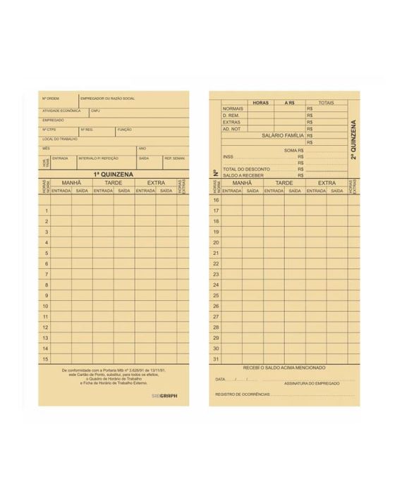 Guia Trabalhista Cartao Ponto 100fls Sidgraph
