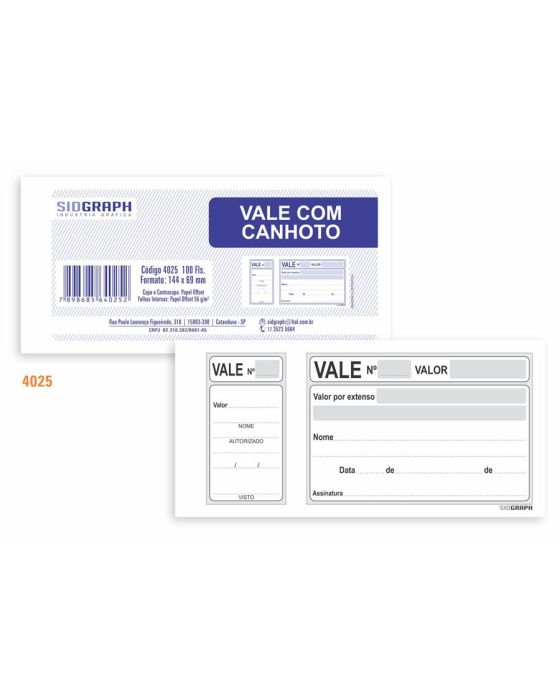 Guia Trabalhista Vale Com Canhoto 100fls Sidgraph