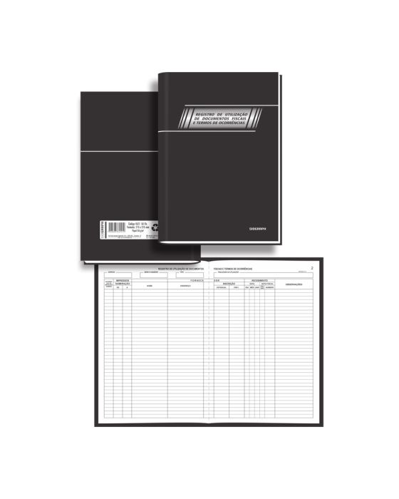 Caracteristicas:- Formato 215 x 315mm- Possui 50 folhas numeradas em papel 56g/m2- 50 páginas pautadas para descrição dos termos de ocorrências- 25 folhas para registro de utilização de documentos fiscais e termos de ocorrências, contendo os seguintes campos: - Espécie - Série e subsérie - Tipo - Finalidade da utilização - Autorização de impressão número - Impressos - Numeração - De - A - Fornecedor - Nome - Endereço - Inscrição - Estadual - CNPJ - Recebimento - Data - Dia - Mês - Ano - Nota fiscal - Série e subsérie - Número - Observações* As especificações podem ser alteradas sem aviso prévio ** Imagem meramente ilustrativa