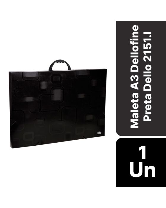 Caracteristicas:A Maleta A3 DelloFine Fumê Dello é ideal para para uso escolar e apresentação de trabalhos de grande formato!Detalhes:- Marca: Dello;- Modelo: 2151.I;- Liha: Maleta;- Cor: Fumê;- Contém: 1 unidade do produto;- Tamanho: A3;- Medidas: 50,5 x 3 x 35cm;- Peso: 0,048Kg;- Espessura: 1,1 micras;- Lombo 3cm;- Design exclusivo Dello;- Possui abas com encaixe para canetas;- Possui régua geométrica.Ideal para:- Ideal para uso escolar e apresentação de trabalhos de grande formato.Composição:- Fabricado em polipropileno.Medidas:- Dimensões do produto: 50,5 x 3 × 35cm;- Peso: 0.048kg.Produto certificado pelo INMETRO 004216/2018.* As especificações podem ser alteradas sem aviso prévio ** Imagem meramente ilustrativa.