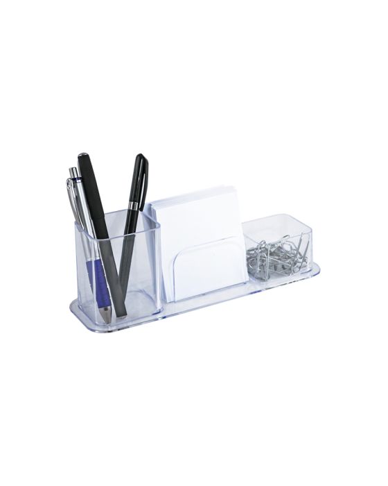 Caracteristicas:O Porta Lápis e Clips Cristal Dello é excelente para organizar as canetas lápis, clips e lembretes em vez de ficarem espalhados pela mesa, deixando sua mesa de trabalho organizada e prática!Detalhes: - Marca: Dello.- Modelo: 3031.H.- Linha: Porta Lápis, Clips e Lembretes.- Cor: Cristal.- Contém: 1 unidade do produto.- Medidas: 24 x 7 x 8cm.- Peso: 0,126g.- Ideal para oganizar a mesa.- Acomoda diversos tipos de materiais pequenos.- Possui dois compartimentos: 1 para canetas, 1 para lembretes e 1 para clips.- Excelente para organização e personalização do seu ambiente.Composição:- Poliestireno.Atenção! Os objetos inclusos na imagem não acompanham o produto, estes devem ser adquiridos separadamente.* As especificações podem ser alteradas sem aviso prévio ** Imagem meramente ilustrativa