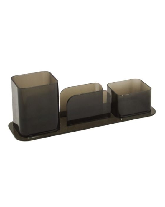 Caracteristicas:O Porta Lápis e Clips Cristal Dello é excelente para organizar as canetas lápis, clips e lembretes em vez de ficarem espalhados pela mesa, deixando sua mesa de trabalho organizada e prática!Detalhes: - Marca: Dello.- Modelo: 3031.I.- Linha: Porta Lápis, Clips e Lembretes.- Cor: Fumê.- Contém: 1 unidade do produto.- Medidas: 24 x 7 x 8cm.- Peso: 0,126g.- Ideal para oganizar a mesa.- Acomoda diversos tipos de materiais pequenos.- Possui dois compartimentos: 1 para canetas, 1 para lembretes e 1 para clips.- Excelente para organização e personalização do seu ambiente.Composição:- Poliestireno.Atenção! Os objetos inclusos na imagem não acompanham o produto, estes devem ser adquiridos separadamente.* As especificações podem ser alteradas sem aviso prévio ** Imagem meramente ilustrativa