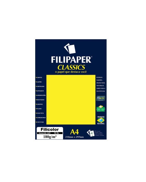 Papel Sulfite A4 180g Filicolor Amarelo 50fls 3415
