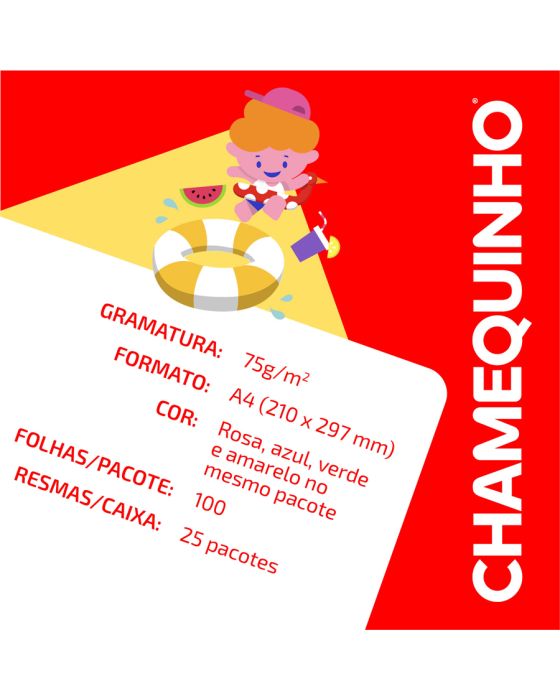 Caracteristicas:Para despertar a criatividade das crianças na escola, em casa ou em qualquer lugar!- Para nós, o papel é o maior símbolo de criatividade que existe. Com ele, toda criança é um artista, um criador, uma inventora. - Ligar os pontos entre as ideias e a nossa imaginação é uma grande diversão.- Disponível em embalagem de 100 folhas.- Embalagem abre e fecha.- É produzido a partir do cultivo de eucalipto 100% renovável.- 25 folhas de cada cor (azul, amarelo, verde, rosa)- Formato: A4 (210x297mm)- Gramatura: 75g/m²- Folhas/resma: 100- Certificação: Cerflor* As especificações podem ser alteradas sem aviso prévio ** Imagem meramente ilustrativa.