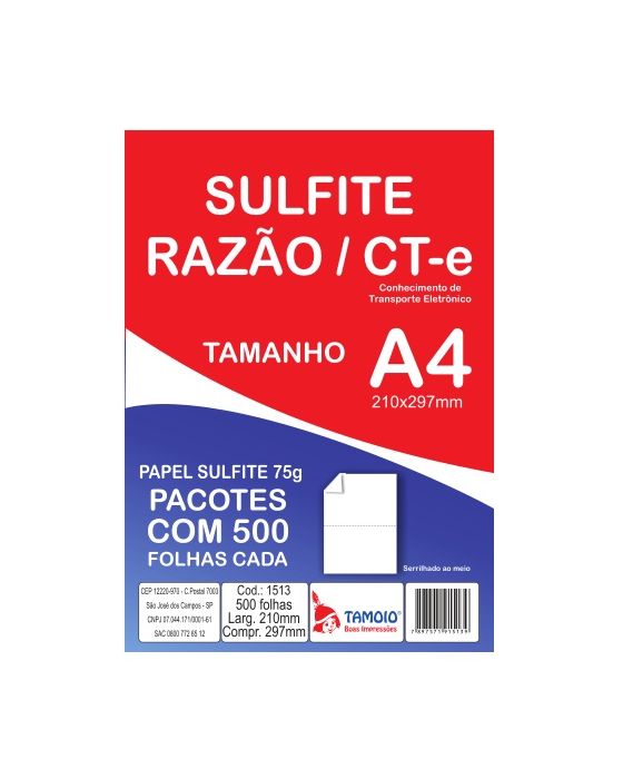 Papel Sulfite A4 75g 210 X 297 Serrilhado Ao Meio (a5) 500 Fls Tamoio