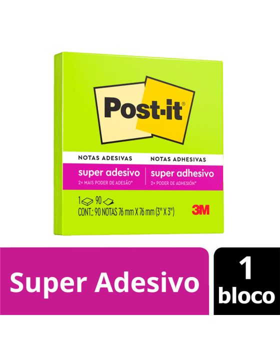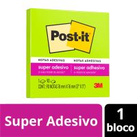 Caracteristicas:As notas adesivas Post-it® tamanho 7,6 cm x 7,6 cm são ideais para anotações e recados. Suas folhas são reposicionáveis, pois possuem adesivo de qualidade 3M que permite que essas sejam retiradas e recolocadas sem danificar papéis ou outras superfícies. Não deixa resíduos do adesivo, todo papel utilizado nas notas Post-it® é certificado pelo SFI (Chain of Custody Certified), o que garante que vem de florestas bem administradas, onde as árvores são replantadas.Detalhes:- Marca: Post-it®;- Fabricante: 3M;- Referência: HB004309900;- Linha: Blocos de nota;- Cor: Verde Neon;- Quantidade de folhas: 90 folhas;- Quantidade de blocos: 1 bloco;- Contém: 1 embalagem com 1 bloco de 90 folhas;- Medidas: 76 x 76 mm (7,6 x 7,6cm);- Possui um adesivo 2x mais forte do que o bloco Post-it®original;- Ideal para anotar recados e se organizar;- Gruda e desgruda: É reposicionavel;- Adesivo ideal para o uso em papel;- Reciclável;- Adesivo de base vegetal.Aplicações sugeridas:- Ideal para fazer anotações e lembretes, possui diversas cores o que facilita sua organização. Composição:- Papel (90g/m²) com adesivo com base vegetal reposicionável.AVISO!- O adesivo pode deixar marcas em algumas superfícies ou remover tinta. Teste antes de usar!Conteúdo da embalagem: 1 Post-it Verde Neon 76 X 76 Mm 90 Folhas 3m.* As especificações podem ser alteradas sem aviso prévio ** Imagem meramente ilustrativa.