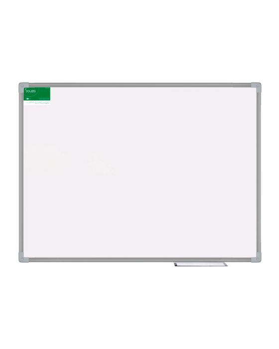 Características:- Quadro branco 200x120cm com superfície em pintura UV e moldura em alumínio anodizado: O Quadro Branco Souza 5108 foi desenvolvido para aplicações de comunicação visual em ambientes corporativos e educacionais, oferecendo escrita suave e fácil remoção a seco. Sua superfície é composta por chapa Duratree ou MDF de 3 mm com pintura branca e acabamento em verniz UV, garantindo boa performance para uso com marcadores específicos para quadro branco.- Acabamento em alumínio com design moderno e fixação invisível: A moldura em alumínio anodizado proporciona resistência e durabilidade, além de um visual profissional. O sistema de cantoneiras plásticas permite fixação com parafusos ocultos, garantindo acabamento limpo e discreto. Pode ser instalado tanto na posição horizontal quanto vertical, adaptando-se ao ambiente.- Superfície funcional para escrita com fácil limpeza: O tratamento com verniz UV permite escrita uniforme e remoção prática com apagadores secos, sem deixar resíduos quando utilizado corretamente com marcadores apropriados. Indicado para rotinas de anotação, planejamento e comunicação visual.- Desempenho ideal para uso leve a moderado: Projetado para aplicações de baixa a média intensidade, o quadro apresenta vida útil estimada de até 1 ano em uso intensivo contínuo. Para demandas mais exigentes, recomenda-se o uso de superfícies de maior resistência, como laminado melamínico ou aço cerâmico.- Indicado para escritórios, salas de reunião e ambientes administrativos: Ideal para uso em escritórios, salas de treinamento, ambientes comerciais e residenciais, o quadro branco Souza 5108 atende necessidades de organização, apresentações e comunicação do dia a dia.- Sobre a marca Souza: A Souza é reconhecida pela fabricação de quadros e soluções para comunicação visual, oferecendo produtos com bom custo-benefício, qualidade construtiva e variedade para diferentes níveis de uso e aplicação.- Dimensões do produto: Comprimento: 2m; Largura: 1,2m; Altura: 4,5cm; Peso: 7,89kg.* As especificações podem ser alteradas sem aviso prévio ** Imagem meramente ilustrativa.