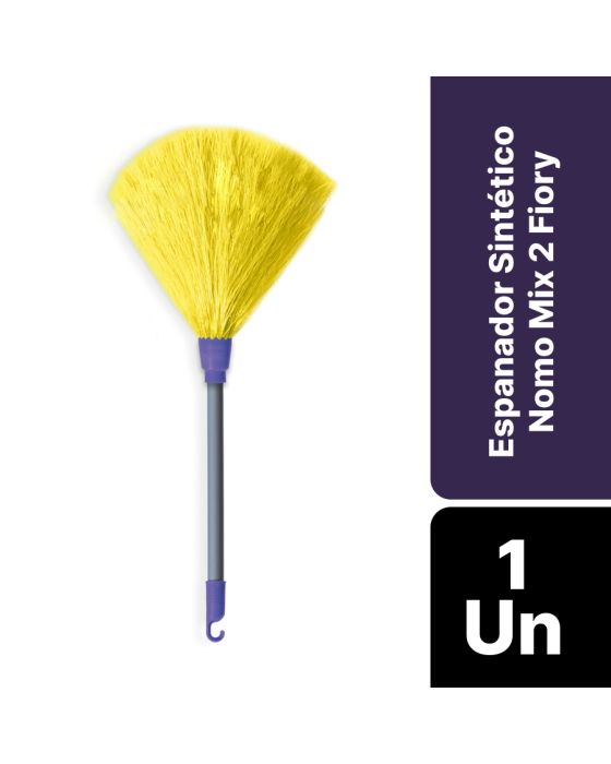 Características:- Eficiência e praticidade na limpeza: O Espanador Sintético Nomo Mix 2 Fiory foi desenvolvido para tornar a remoção de poeira e partículas mais rápida e eficiente em diferentes ambientes. Com design leve, funcional e de alta durabilidade, ele oferece um manuseio confortável e garante um resultado superior em superfícies delicadas ou de difícil acesso.- Estrutura reforçada e alto desempenho: Composto por fibras sintéticas de maior volume, o espanador retém mais poeira em cada movimento, proporcionando uma limpeza uniforme sem dispersar partículas pelo ar. Seus cabos alongados e mais leves facilitam o alcance em locais altos e reduzem o esforço físico do usuário durante a utilização.- Materiais resistentes e seguros: Produzido com cabo em plástico resistente e cerdas sintéticas de alta qualidade, o espanador assegura longa vida útil mesmo em uso frequente. É indicado exclusivamente para superfícies em temperatura ambiente, sendo necessário evitar sua aplicação em locais acima de 60 °C para preservar a integridade das fibras.- Design moderno e ergonômico: Além da eficiência funcional, o produto conta com cerdas na cor amarela que permitem fácil visualização da sujeira acumulada e cabo em cinza e roxo, proporcionando modernidade e praticidade no uso diário.- Tradição Fiory: A Fiory é reconhecida pela produção de utensílios de limpeza que unem qualidade, funcionalidade e praticidade, atendendo às demandas de lares e empresas. A marca Fiory é reconhecida no segmento de utilidades domésticas e produtos de limpeza por oferecer soluções práticas, funcionais e acessíveis para o dia a dia. O Espanador Nomo Mix 2 integra essa linha de produtos que unem inovação, resistência e eficiência.- Dimensões da embalagem:Comprimento: 45m;Largura: 8cm;Altura: 1,5cm;Peso: 26g.* As especificações podem ser alteradas sem aviso prévio ** Imagem meramente ilustrativa.