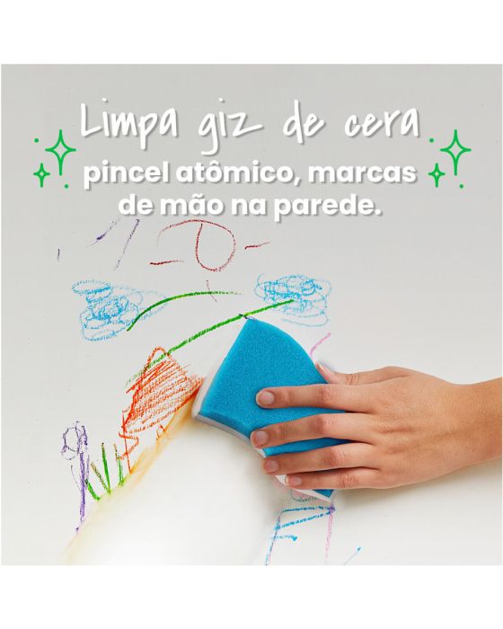 Características:Com a Esponja Mágica Scotch-Brite®, você remove as manchas e marcas que já tinha desistido de limpar. Utilizando apenas água, sem uso de produtos químicos, você remove, de forma rápida e prática, sujeiras como giz de cera, lápis de cor, pincel atômico ou marcas de mão em paredes, manchas em vidros e espelhos, resíduos de sabão em azulejos, tomadas e interruptores, pisos de madeira, plástico e metais pintados e muito mais.Ela é desenvolvida para superar as sujeiras mais difíceis, como giz de cera, lápis de cor, pincel atômico ou marcas de mão em paredes, manchas em vidros e espelhos, resíduos de sabão em azulejos, tomadas e interruptores, pisos de madeira, plástico e metais pintados e muito mais. Esta esponja garante o melhor resultado sem qiímicos ou produtos de limpeza – utilize-a apenas com água. Sem muito esforço e com apenas um toque de água, a Esponja Mágica Scotch-Brite apaga as manchas que você pensou que eram permanentes na sua casa. Com ela, você conserva suas paredes e superfícies sempre novas.Detalhes:- Marca: Scotch-Brite®;- Fabricante: 3M®;- Modelo: Esponja Mágica Scotch-Brite® Limpa Manchas para Parede;- Referência: HB004797401;- Linha: Esponjas;- Cor: Branca/Azul;- Uso: Limpeza em geral;- Contém: 1 embalagem do produto com 12 unidades do produto;- Remove as manchas e marcas que já tinha desistido de limpar;- Limpa giz de cera, lápis de cor, pincel atômico, marcas de mão em paredes, manchas em vidros e espelhos, resíduos de sabão em azulejos, tomadas e interruptores, pisos de madeira, plástico e metais pintados e muito mais;- Pode ser utilizada também para remover manchas de caneta esferográfica e hidrográfica até 3 horas após o risco em paredes e superfícies melamínicas;- Limpa apenas com água, sem a necessidade de químicos ou produtos de limpeza;- Esponja ideal para limpeza de paredes;- Remove sujeira difíceis.Ideal para:- Ideal para: paredes, manchas em vidros e espelhos, resíduos de sabão em azulejos, tomadas e interruptores, pisos de madeira, plástico e metais pintados e muito mais.Aplicações sugeridas:- Remove as sujeiras mais difíceis utilizando apenas água.Medidas:- Composição: 13,5 x 3 x 7,5cm (CxAxL).Conteúdo da embalagem: 2 Esponja Magica Limpa Manchas Scotch Brite 3m.* As especificações podem ser alteradas sem aviso prévio ** Imagem meramente ilustrativa.