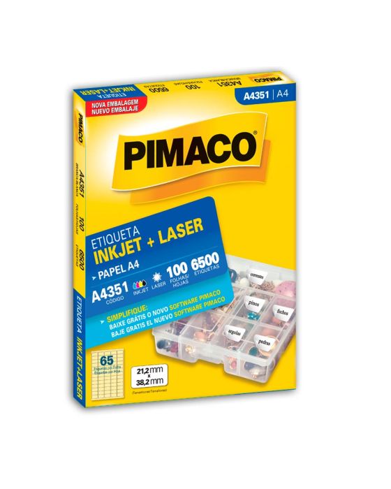 Etiqueta Adesiva Laser/jet A4 351 21,2x38,2 Cx C/100f Pimaco