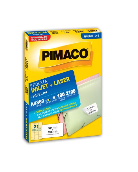 Etiqueta Adesiva Laser/jet A4 360 38,1x63,5 Cx C/100f Pimaco