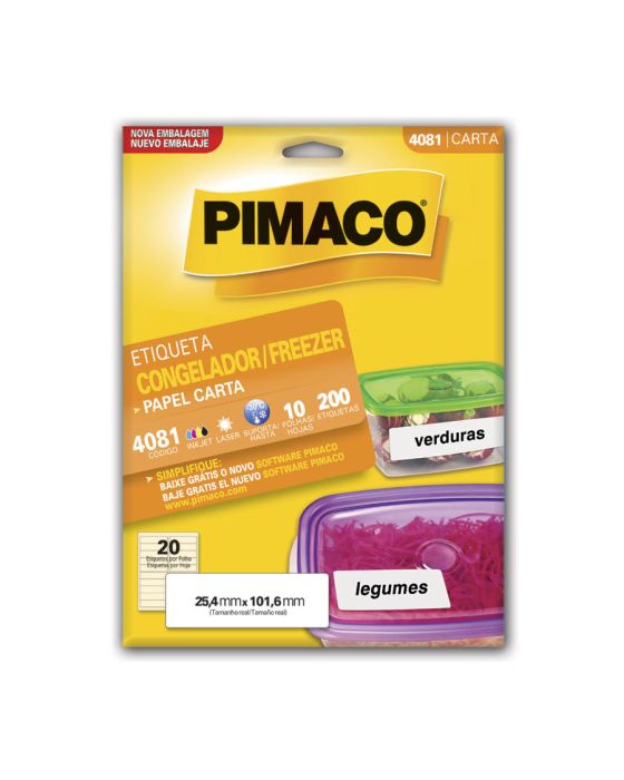 Etiqueta Adesiva Laser/jet Carta 4081 25,4x101,6 Para Congelador E Freezer Cx C/10 Fls Pimaco