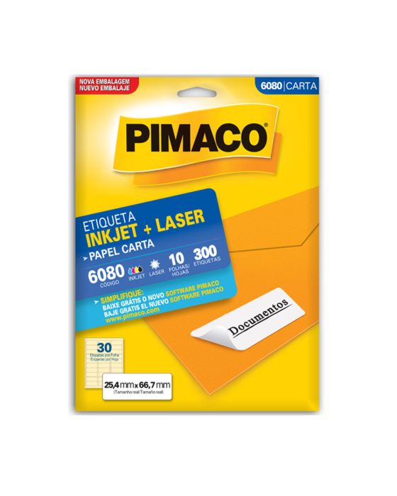 Etiqueta Adesiva Laser/jet Carta 6080 25,4x66,7 Cx C/10f Pimaco