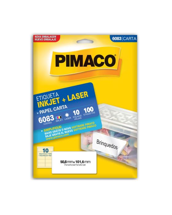 Etiqueta Adesiva Laser/jet Carta 6083 50,8x101,6 Cx C/10f Pimaco