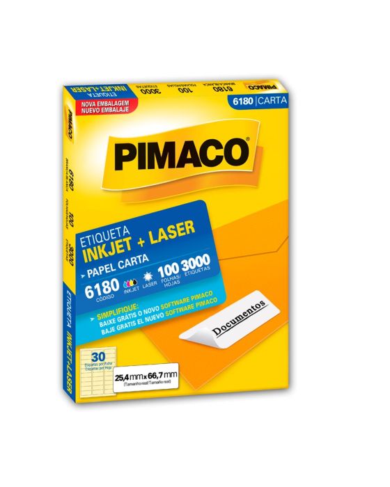 Etiqueta Adesiva Laser/jet Carta 6180 25,4x66,7 Cx C/100f Pimaco