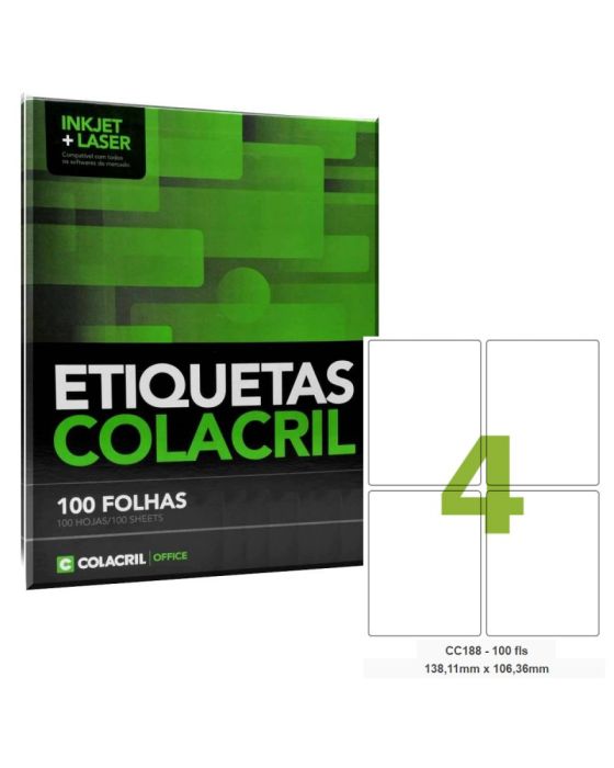 Etiqueta Laser/jet Carta 6188/cc188 138,11x106,36 Colacril Cx C/100f