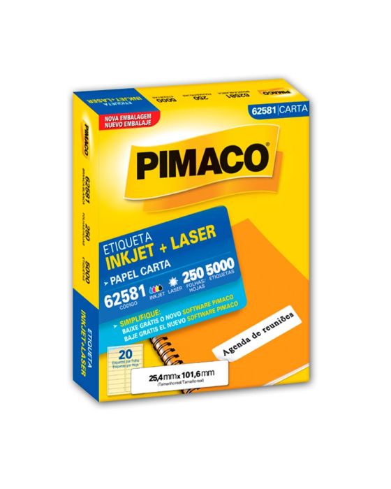 Etiqueta Adesiva Laser/jet Carta 62581 25,4x101,6 Cx C/250f Pimaco