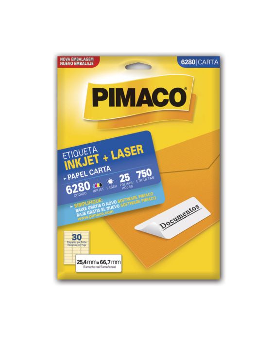 Etiqueta Adesiva Laser/jet Carta 6280 25,4x66,7 Cx C/25f Pimaco