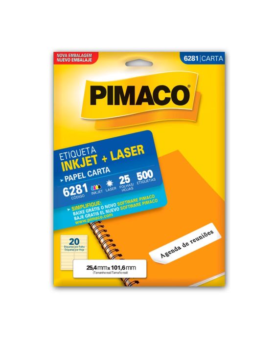 Etiqueta Adesiva Laser/jet Carta 6281 25,4x101,6 Cx C/25f Pimaco