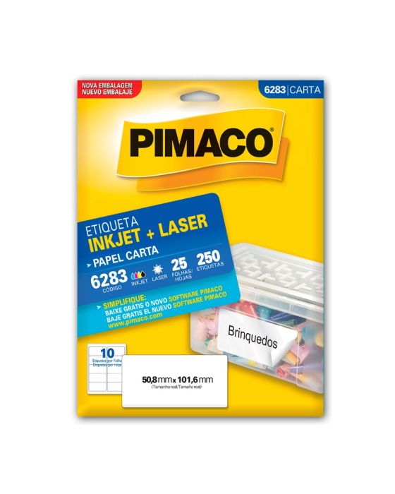 Etiqueta Adesiva Laser/jet Carta 6283 50,8x101,6 Cx C/25f Pimaco