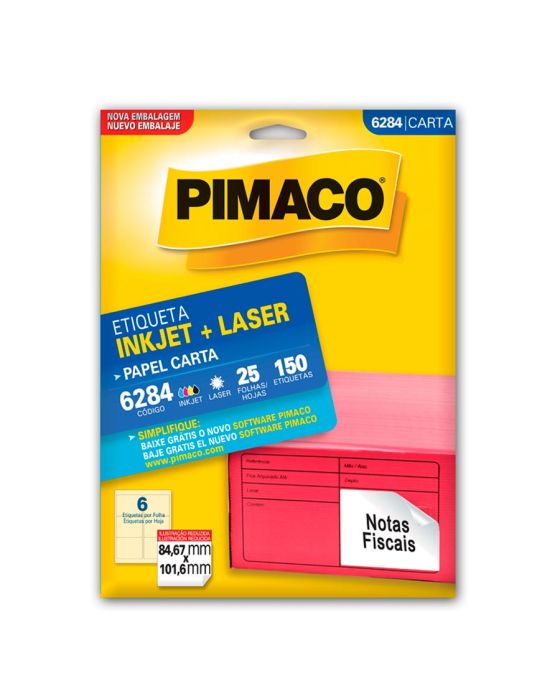 Etiqueta Adesiva Laser/jet Carta 6284 84,67x101,6 Cx C/25f Pimaco