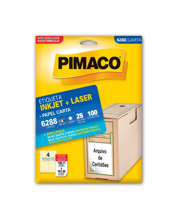 Etiqueta Adesiva Laser/jet Carta 6288 138,11x106,36 Cx C/25f Pimaco