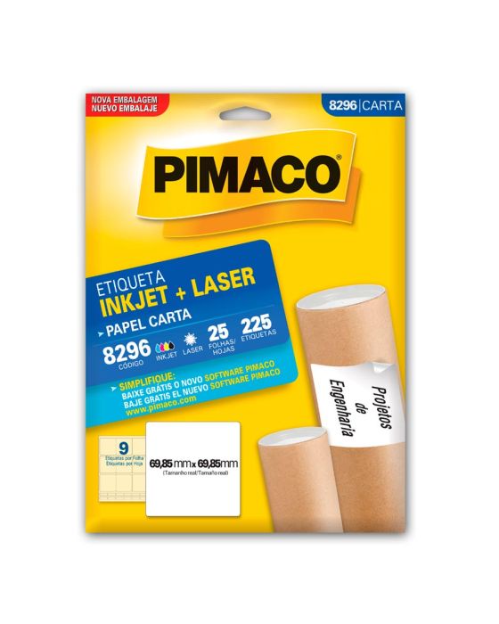 Etiqueta Adesiva Laser/jet Carta 8296 69,85x69,85 P/ Disquete Cx C/25f Pimaco