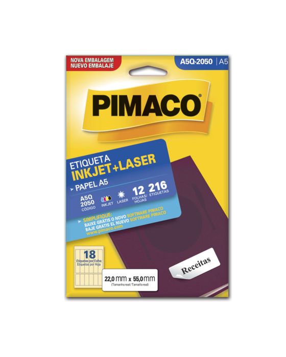 Etiqueta Adesiva Multiuso A5 Q2050 22,0x55,0 C/216un Pimaco