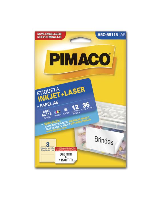 Etiqueta Adesiva Multiuso A5 Q66115 66,0x115,0 C/36un Pimaco