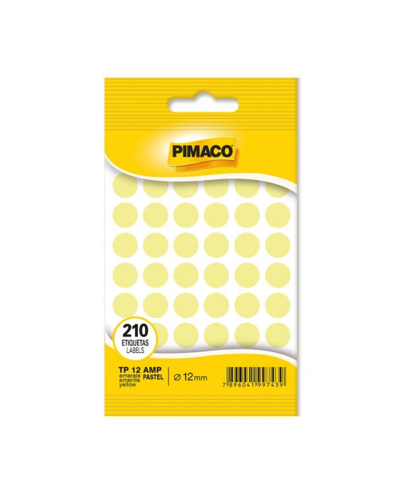 Caracteristicas:As etiquetas PIMACO podem ser amplamente utilizadas no trabalho ou em casa, sempre mantendo um alto nível de apresentação. São diversos e modelos e quantidades para suprir qualquer demanda. Chegaram as novas etiquetas multiuso pastel Pimaco!Detalhes:- Marca: Pimaco.- Modelo: TP-12 AMP.- Linha: Etiquetas.- Formato: Redondo.- Cor: Amarelo Pastel.- Quantidade total de etiquetas: 210 etiquetas.- Quantidade por folha: 42 etiquetas.- Quantidade de folhas: 5 folhas.- Carreira: 6 fileiras com 7 etiquetas.- Tamanho da etiqueta: Ø12mm.Onde usar:- Ideal para organização de produtos, catálogos, índices, lacrar envelopes e etc.Composição:- Papel ou película de plástico transparente com adesivo acrílico aquoso.Validade Indeterminada.* As especificações podem ser alteradas sem aviso prévio ** Imagem meramente ilustrativa.
