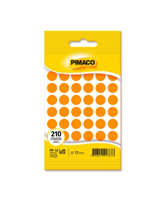 Caracteristicas:As etiquetas PIMACO podem ser amplamente utilizadas no trabalho ou em casa, sempre mantendo um alto nível de apresentação. São diversos e modelos e quantidades para suprir qualquer demanda.Detalhes:- Marca: Pimaco.- Modelo: TP-12 LJN.- Linha: Etiquetas.- Formato: Redondo.- Cor: Laranja Neon.- Quantidade total de etiquetas: 210 etiquetas.- Quantidade por folha: 42 etiquetas.- Quantidade de folhas: 5 folhas.- Carreira: 6 fileiras com 7 etiquetas.- Tamanho da etiqueta: Ø12mm.Onde usar:- Ideal para organização de produtos, catálogos, índices, lacrar envelopes e etc.Composição:- Papel ou película de plástico transparente com adesivo acrílico aquoso.Validade Indeterminada.* As especificações podem ser alteradas sem aviso prévio ** Imagem meramente ilustrativa.