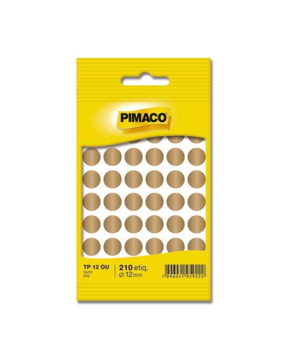 Caracteristicas:As etiquetas PIMACO podem ser amplamente utilizadas no trabalho ou em casa, sempre mantendo um alto nível de apresentação. São diversos e modelos e quantidades para suprir qualquer demanda.Detalhes:- Marca: Pimaco.- Modelo: TP-12 OU.- Linha: Etiquetas.- Formato: Redondo.- Cor: Ouro.- Quantidade total de etiquetas: 210 etiquetas.- Quantidade por folha: 42 etiquetas.- Quantidade de folhas: 5 folhas.- Carreira: 6 fileiras com 7 etiquetas.- Tamanho da etiqueta: Ø12mm.Onde usar:- Ideal para organização de produtos, catálogos, índices, lacrar envelopes e etc.Composição:- Papel ou película de plástico transparente com adesivo acrílico aquoso.Validade Indeterminada.* As especificações podem ser alteradas sem aviso prévio ** Imagem meramente ilustrativa.