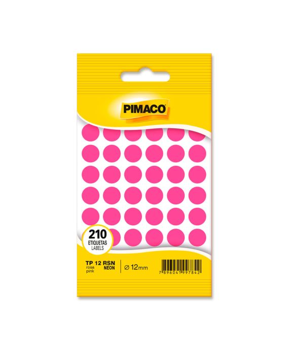 Caracteristicas:As etiquetas PIMACO podem ser amplamente utilizadas no trabalho ou em casa, sempre mantendo um alto nível de apresentação. São diversos e modelos e quantidades para suprir qualquer demanda.Detalhes:- Marca: Pimaco.- Modelo: TP-12 RSN.- Linha: Etiquetas.- Formato: Redondo.- Cor: Rosa Neon.- Quantidade total de etiquetas: 210 etiquetas.- Quantidade por folha: 42 etiquetas.- Quantidade de folhas: 5 folhas.- Carreira: 6 fileiras com 7 etiquetas.- Tamanho da etiqueta: Ø12mm.Onde usar:- Ideal para organização de produtos, catálogos, índices, lacrar envelopes e etc.Composição:- Papel ou película de plástico transparente com adesivo acrílico aquoso.Validade Indeterminada.* As especificações podem ser alteradas sem aviso prévio ** Imagem meramente ilustrativa.