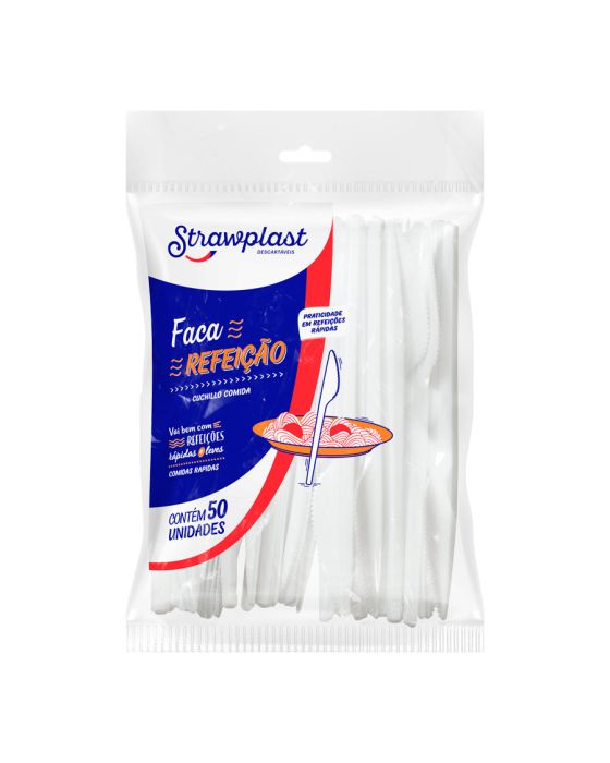 Faca Descartavel Branco Refeicao C/50 Strawplast Fsb-702