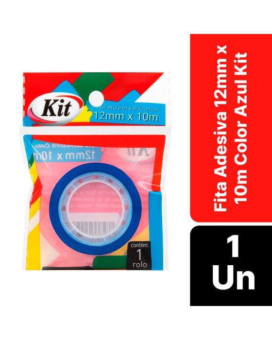 Características:- Fixação prática e versátil para uso geral: A Fita Adesiva 12mm x 10m Color Azul Kit é ideal para trabalhos escolares, escritórios e aplicações diversas do dia a dia, proporcionando adesão eficiente e acabamento limpo. Sua cor azul vibrante garante destaque visual e facilita a organização por cores em diferentes usos.- Construção em polipropileno e adesivo acrílico: Produzida com filme de polipropileno (BOPP) e adesivo acrílico à base de água, a fita oferece fixação firme, resistência ao envelhecimento e fácil manuseio. Sua composição assegura adesão uniforme em papel, plástico, metal e superfícies lisas, sem deixar resíduos após a remoção.- Aplicações amplas e uso profissional: Adequada para ambientes corporativos, instituições de ensino, escritórios e setores de embalagem leve, é indicada para reparos simples, fechamento de pacotes, identificação e codificação por cores. Seu tom azul marcante é ideal para sinalizações rápidas e controle visual de materiais.- Durabilidade e conservação: Com validade indeterminada, mantém sua adesão e flexibilidade por longos períodos, mesmo sob variações moderadas de temperatura e umidade, garantindo confiabilidade e desempenho constante em uso prolongado.- Qualidade e confiabilidade da linha Kit: Os produtos da linha Kit são reconhecidos pela consistência, praticidade e excelente custo-benefício, desenvolvidos para uso frequente em ambientes profissionais, administrativos e educacionais.- Dimensões da embalagem: Comprimento: 9cm; Largura: 6,8cm; Altura: 1,3cm; Peso: 8g.* As especificações podem ser alteradas sem aviso prévio ** Imagem meramente ilustrativa.
