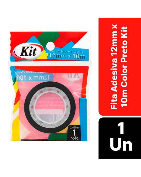 Características:- Fixação prática e versátil para uso geral: A Fita Adesiva 12mm x 10m Color Preto Kit é ideal para trabalhos escolares, escritórios e aplicações diversas do dia a dia, proporcionando adesão eficiente e acabamento limpo. Sua cor preto vibrante garante destaque visual e facilita a organização por cores em diferentes usos.- Construção em polipropileno e adesivo acrílico: Produzida com filme de polipropileno (BOPP) e adesivo acrílico à base de água, a fita oferece fixação firme, resistência ao envelhecimento e fácil manuseio. Sua composição assegura adesão uniforme em papel, plástico, metal e superfícies lisas, sem deixar resíduos após a remoção.- Aplicações amplas e uso profissional: Adequada para ambientes corporativos, instituições de ensino, escritórios e setores de embalagem leve, é indicada para reparos simples, fechamento de pacotes, identificação e codificação por cores. Seu tom preto marcante é ideal para sinalizações rápidas e controle visual de materiais.- Durabilidade e conservação: Com validade indeterminada, mantém sua adesão e flexibilidade por longos períodos, mesmo sob variações moderadas de temperatura e umidade, garantindo confiabilidade e desempenho constante em uso prolongado.- Qualidade e confiabilidade da linha Kit: Os produtos da linha Kit são reconhecidos pela consistência, praticidade e excelente custo-benefício, desenvolvidos para uso frequente em ambientes profissionais, administrativos e educacionais.- Dimensões da embalagem: Comprimento: 9cm; Largura: 6,8cm; Altura: 1,3cm; Peso: 8g.* As especificações podem ser alteradas sem aviso prévio ** Imagem meramente ilustrativa.