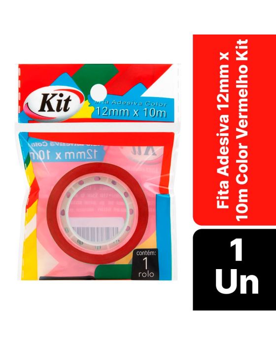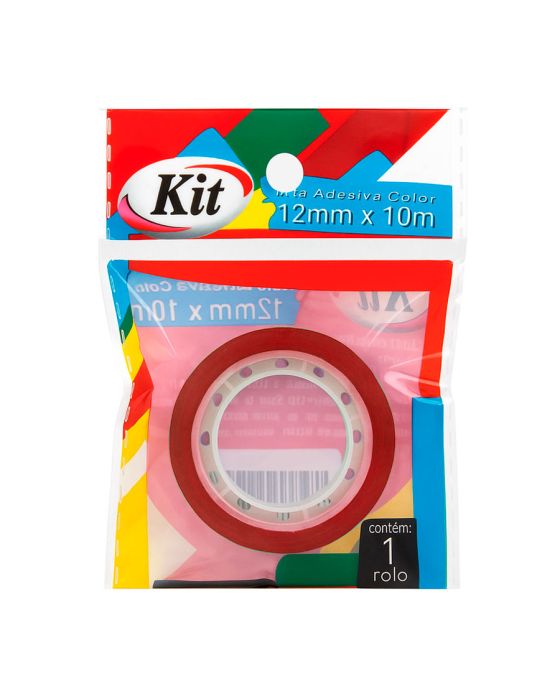 Características:- Fixação prática e versátil para uso geral: A Fita Adesiva 12mm x 10m Color Vermelho Kit é ideal para trabalhos escolares, escritórios e aplicações diversas do dia a dia, proporcionando adesão eficiente e acabamento limpo. Sua cor vermelho vibrante garante destaque visual e facilita a organização por cores em diferentes usos.- Construção em polipropileno e adesivo acrílico: Produzida com filme de polipropileno (BOPP) e adesivo acrílico à base de água, a fita oferece fixação firme, resistência ao envelhecimento e fácil manuseio. Sua composição assegura adesão uniforme em papel, plástico, metal e superfícies lisas, sem deixar resíduos após a remoção.- Aplicações amplas e uso profissional: Adequada para ambientes corporativos, instituições de ensino, escritórios e setores de embalagem leve, é indicada para reparos simples, fechamento de pacotes, identificação e codificação por cores. Seu tom vermelho marcante é ideal para sinalizações rápidas e controle visual de materiais.- Durabilidade e conservação: Com validade indeterminada, mantém sua adesão e flexibilidade por longos períodos, mesmo sob variações moderadas de temperatura e umidade, garantindo confiabilidade e desempenho constante em uso prolongado.- Qualidade e confiabilidade da linha Kit: Os produtos da linha Kit são reconhecidos pela consistência, praticidade e excelente custo-benefício, desenvolvidos para uso frequente em ambientes profissionais, administrativos e educacionais.- Dimensões da embalagem: Comprimento: 9cm; Largura: 6,8cm; Altura: 1,3cm; Peso: 8g.* As especificações podem ser alteradas sem aviso prévio ** Imagem meramente ilustrativa.