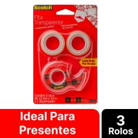 Fita Adesiva 12mm X 10m Transparente C/3 Rl + Dispensador Scotch 3m