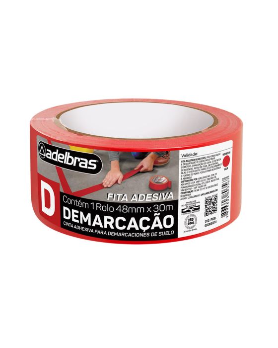 Caracteristicas:- Fita com dorso em PVC e adesivo de borracha e resinas. - Cor Vermelho- 30 metros x 48 mm- Usada para demarcar áreas- Assegure-se que a superfície esteja limpa e livre para a aplicação- Composição: Filme de Policloreto de Vinila (PVC), coberto com adesivo acrilico solvente- Condições de armazenagem: Embalagem original, coberta e protegida do calor, unidade e pó.- Aplicação:Fita destinada para a demarcação de áreas industriais, podendo ter utilização na Fixação em vidros, portas e divisórias, identificação de containers, identificação de extintores e áreas de risco, dentre outras Características Técnicas- Espessura: 0,15 mm - Adesão ao aço: 5,2 N / 25 mm - Resistência à tração: 62,3 N / 25 mm - Alongamento: 160%* As especificações podem ser alteradas sem aviso prévio ** Imagem meramente ilustrativa